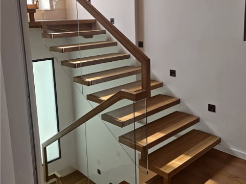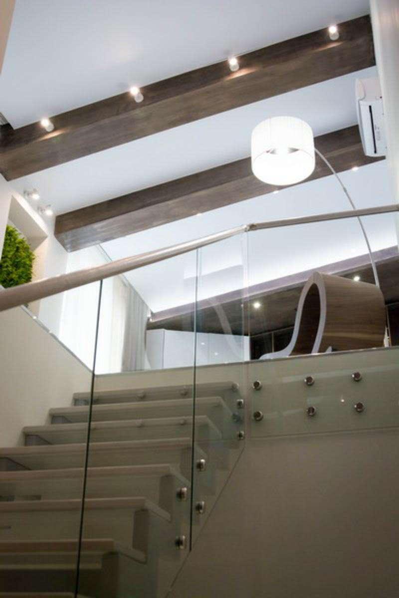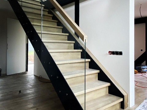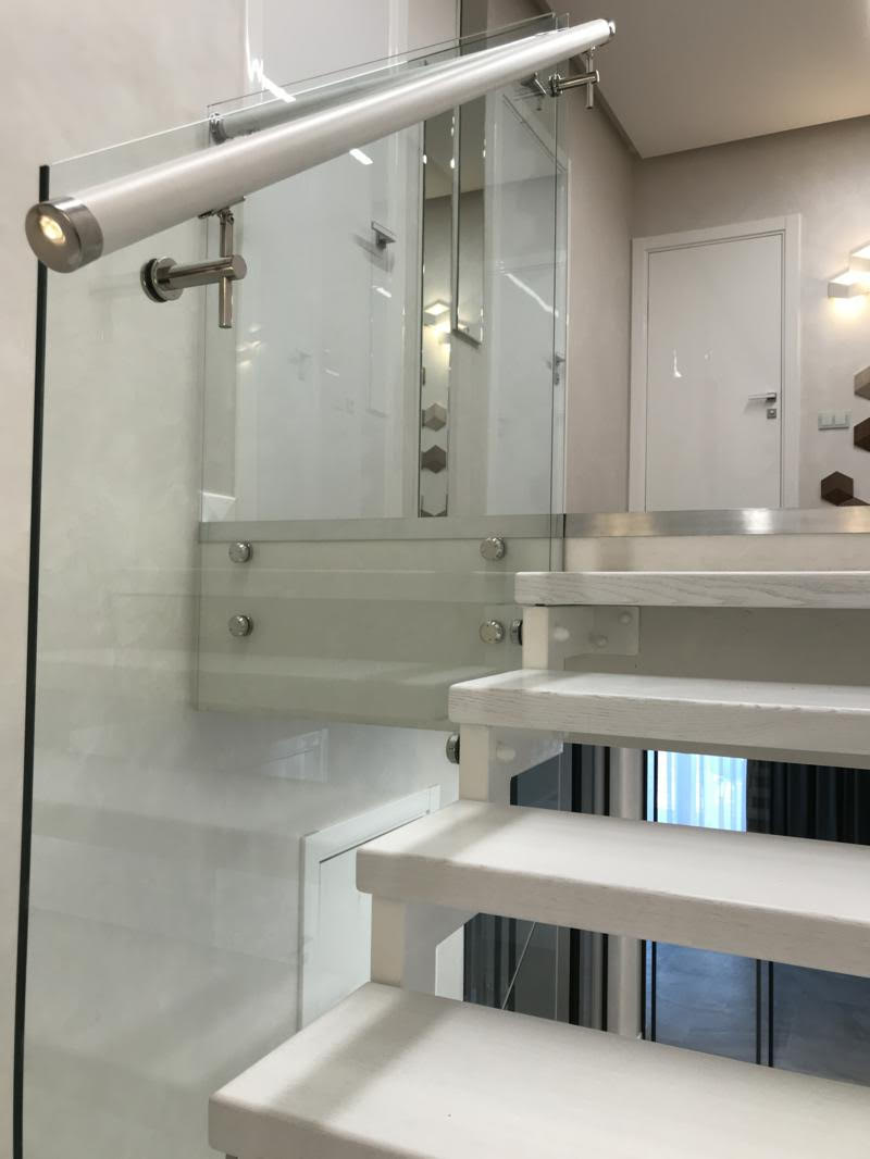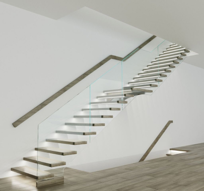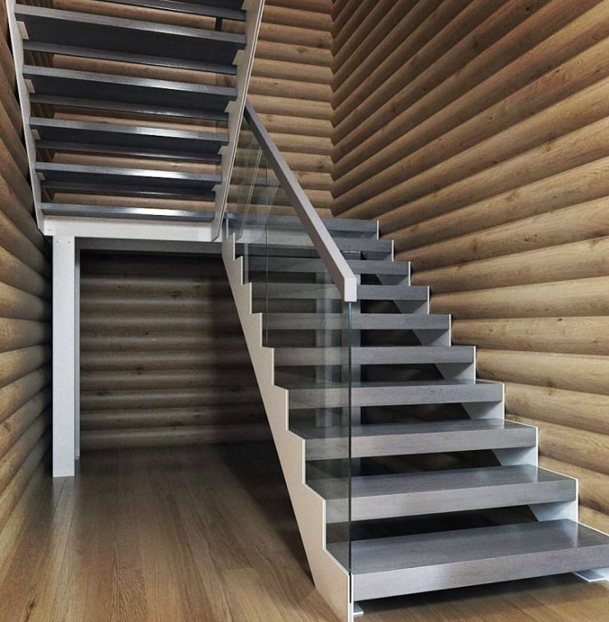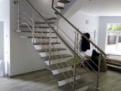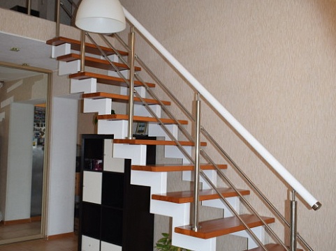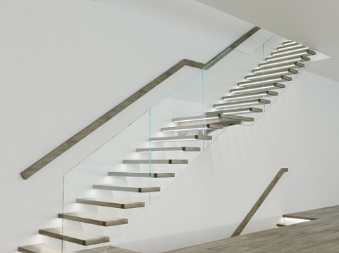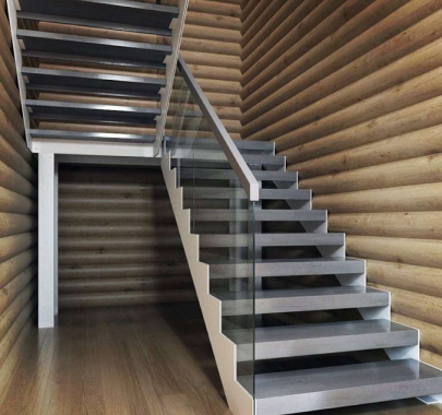 По внешней стороне несущую нагрузку несет стекло или больца, соединяющие все ступени в единую монолитную конструкцию.