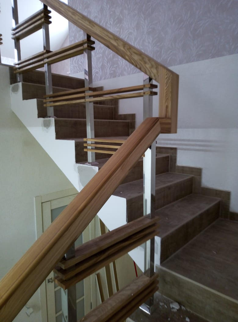 - Металлокаркас можно связать с любыми перилами. к ним одинаково подходят кованые перила, нержавеющие перила, интерьерные ограждения для лестниц, ограждения с пластиковым поручнем и деревянным поручнем
