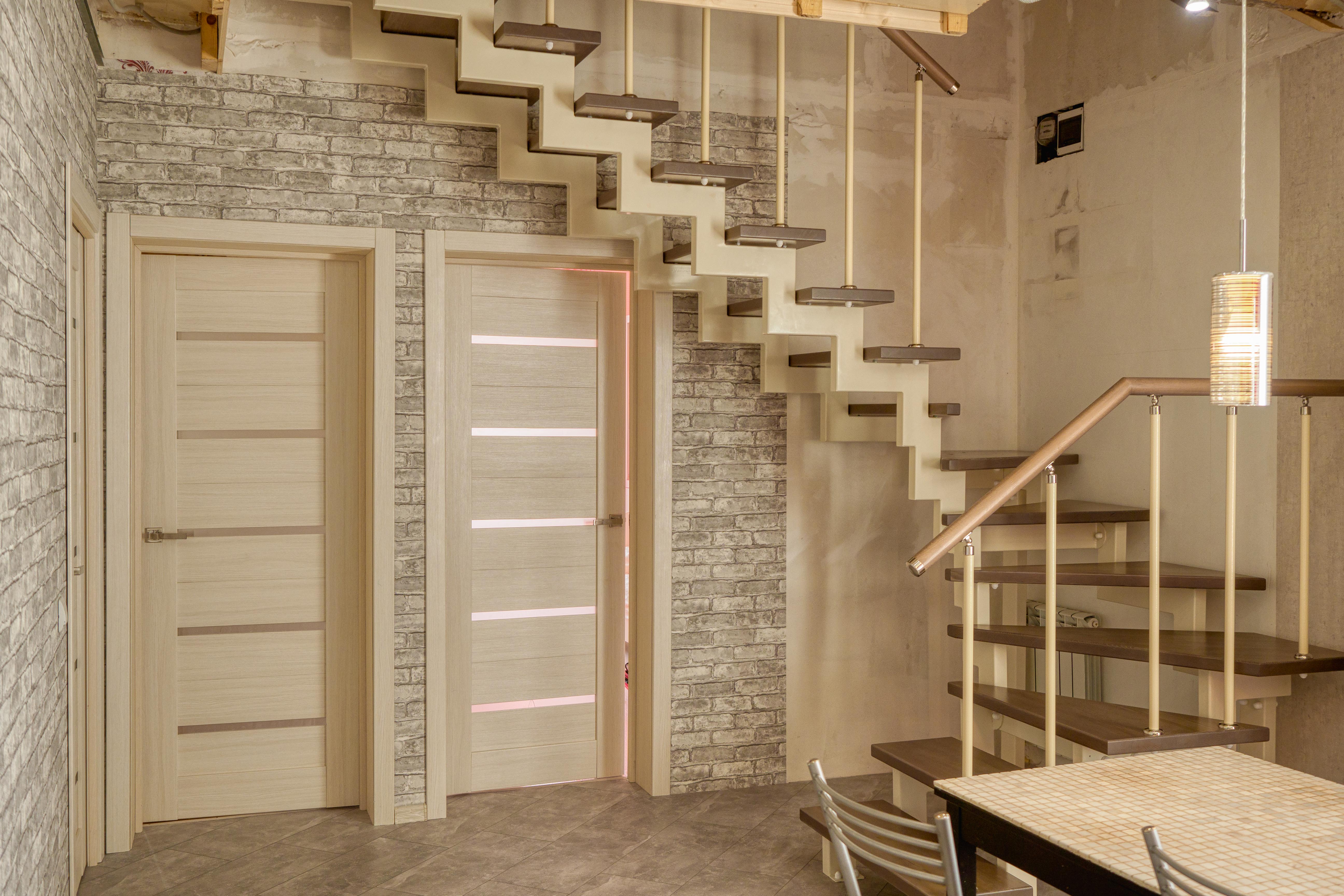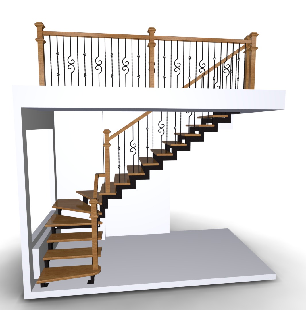 - Выберите подходящий каркас будущей лестницы, подберите понравившийся вам материал ступеней, перила и цвет